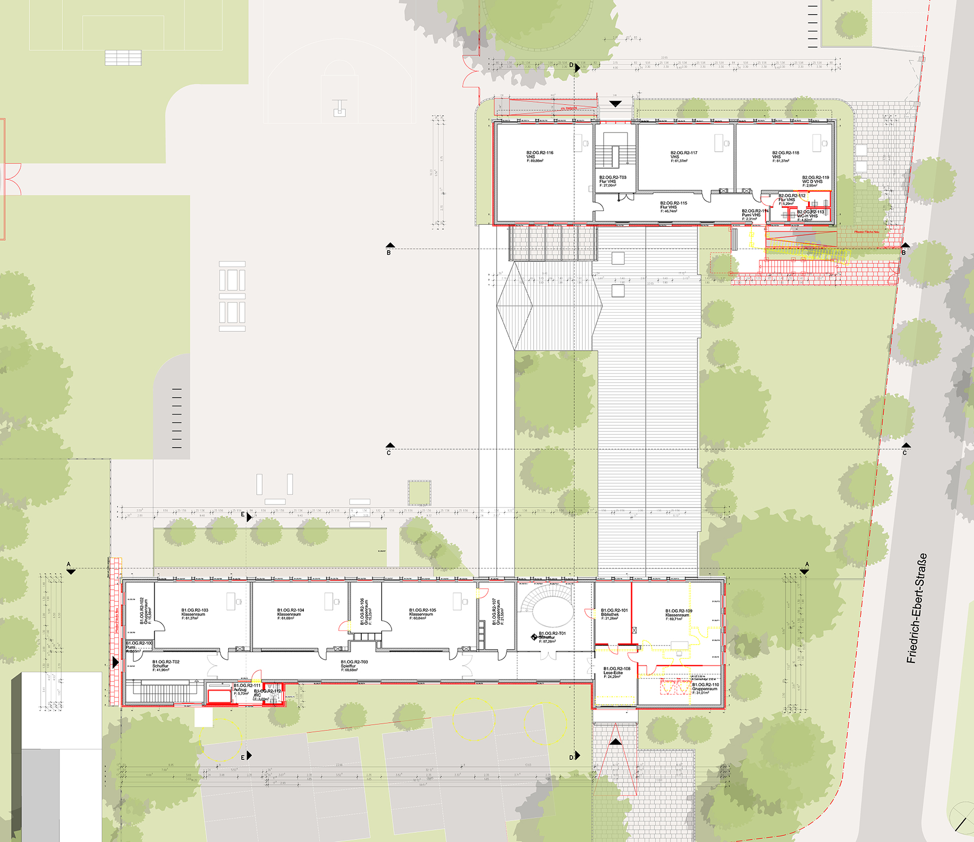 Das ursprüngliche Gebäude stammt aus den 1960er Jahren und wurde in Massivbauweise errichtet. Die Süd-Ost-Fassaden der Bauteile 1 und 2 wurden nachträglich mit einer hinterlüfteten Klinker-Vorsatzmauerschale mit Dämmung versehen.