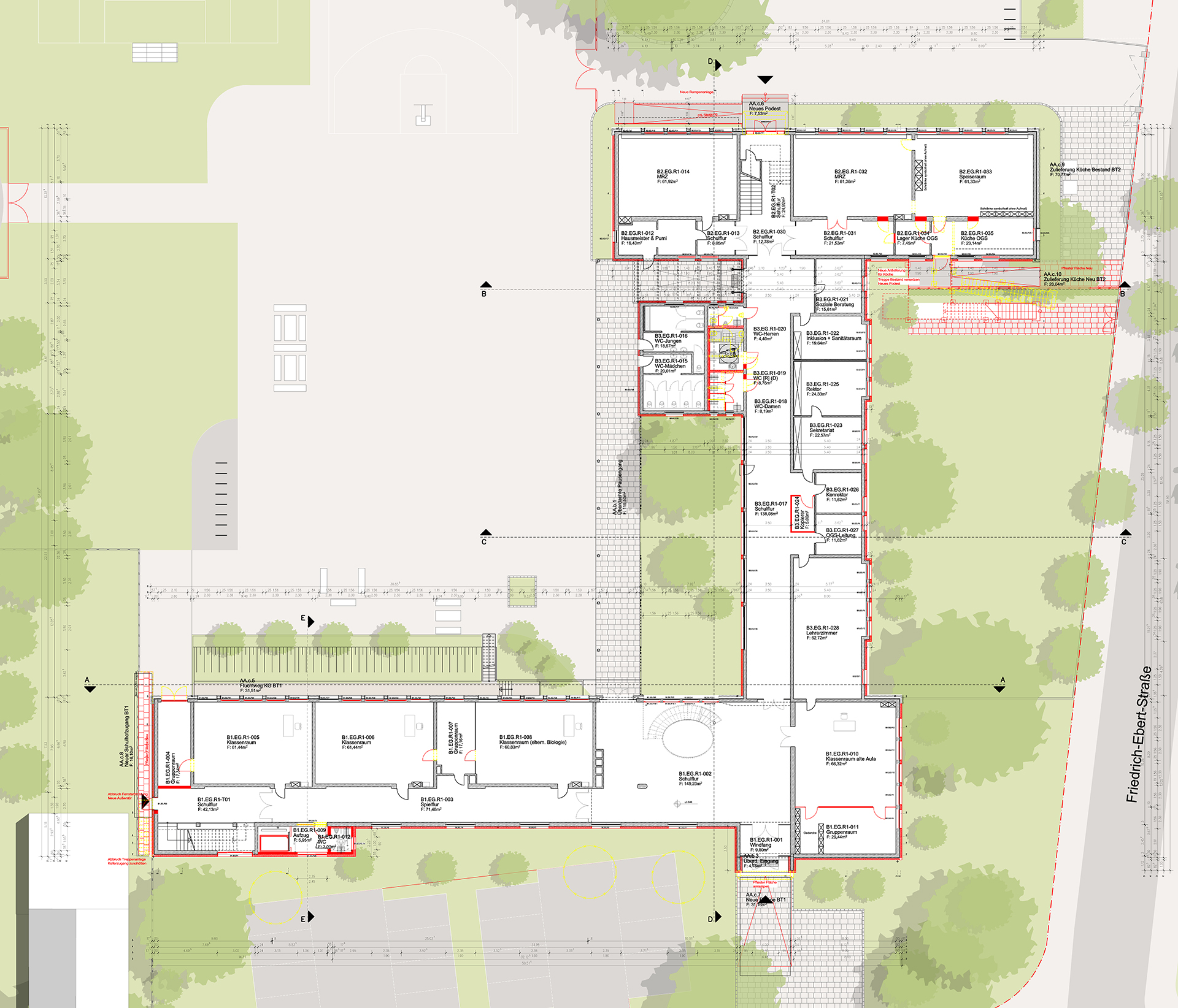 Die Gemeinschafts-Hauptschule Escher Straße 88 in Pulheim stellt ihren Betrieb zum Sommer 2019 ein. Im Anschluss wird das Gebäude von einer 8-zügigen Grundschule mit Nachmittagsbetreuung (OGS) und der Volkshochschule genutzt. Im Zuge der baulichen Anpassung an die zukünftigen Bedürfnisse erfolgt eine energetische Sanierung des Gebäudes. Das Gebäude erhält einen Anbau mit Aufzug und Toiletten.