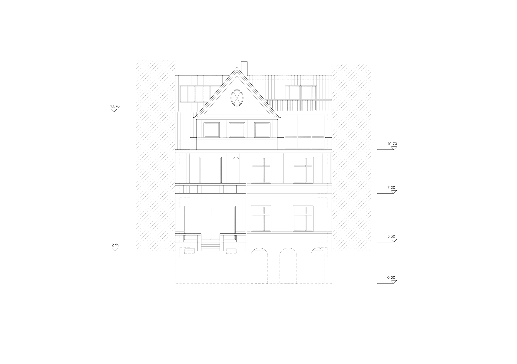 Alle Geschosse erfahren eine räumlich-funktionale Neuorganisierung, um den heutigen Bedürfnissen einer Familie gerecht werden zu können.