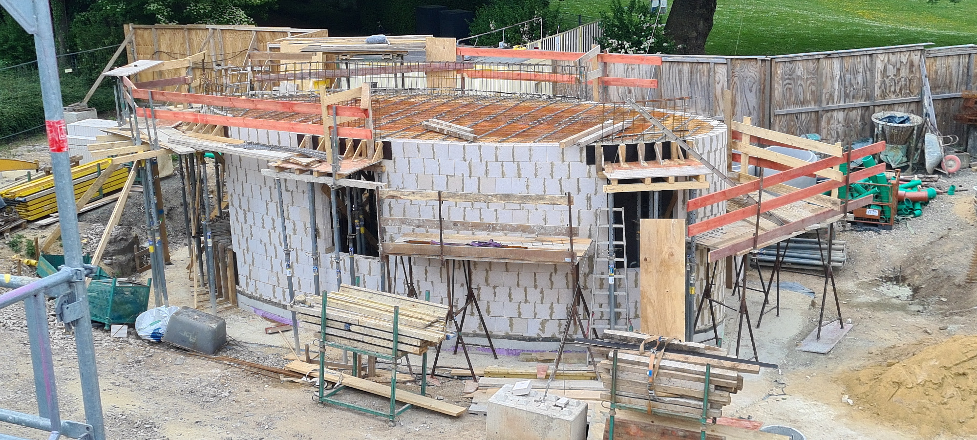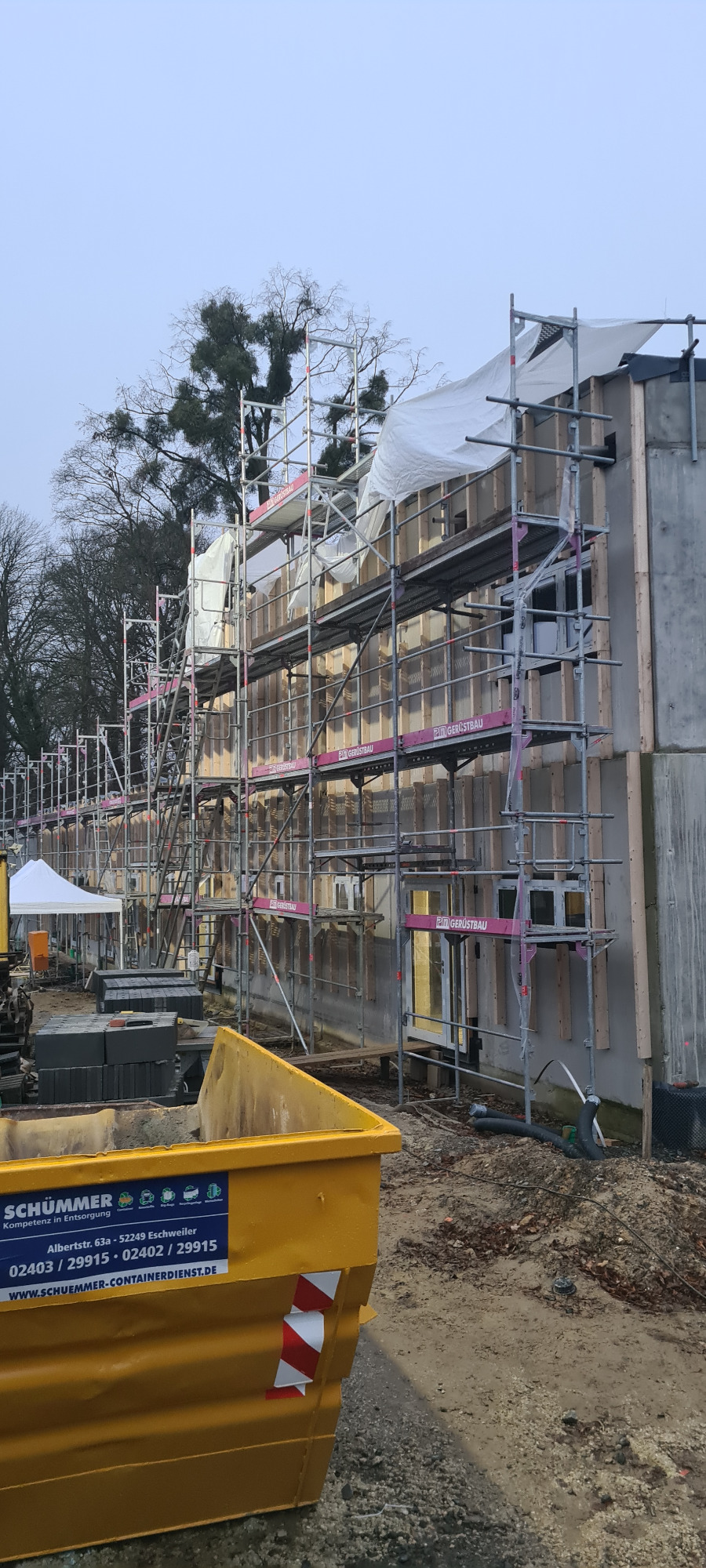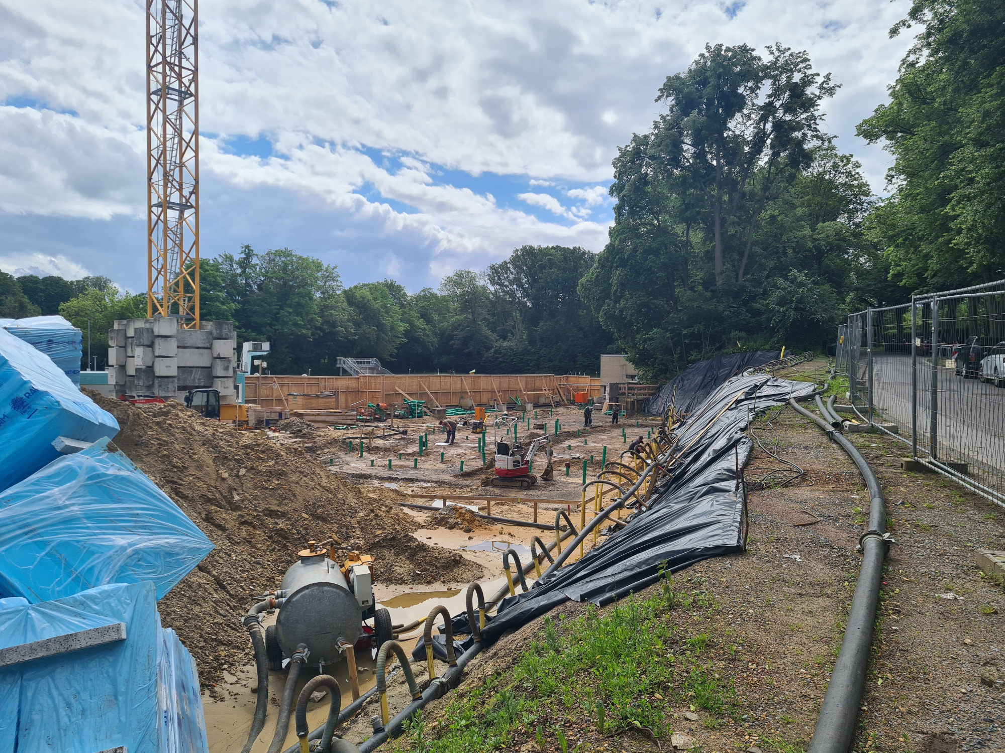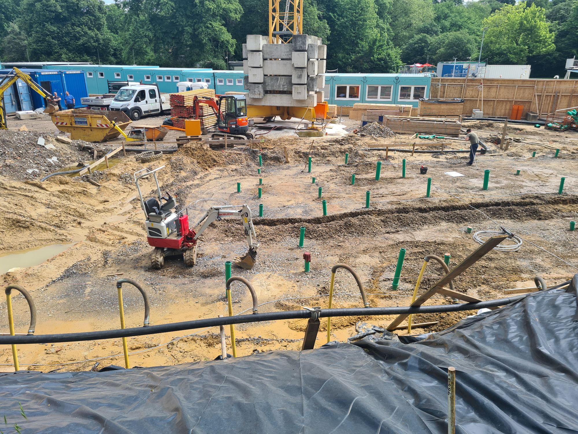 Der geplante Neubau wird mit ca. 2.935 m³ deutlich kleiner als das bestehende Sozialgebäude ca.5.726 m³. Die Summe aller versiegelten Flächen (bebaute Flächen, überdachte Flächen, gepflasterte Flächen) fällt mit ca. 1.901 m² um fast 307 m² geringer aus als im heutigen Bestand (2.208 m²).