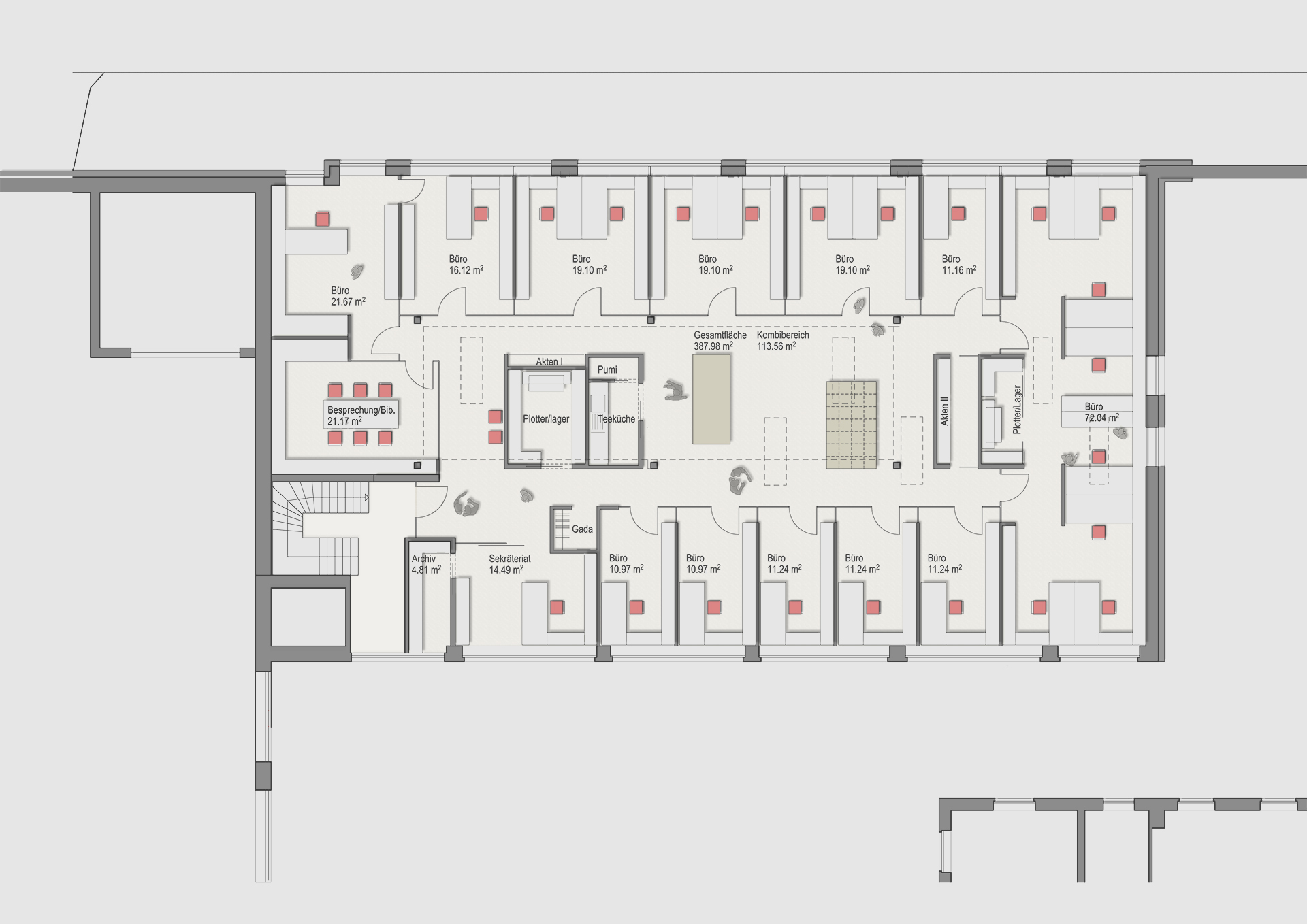 Variante 1: Nutzungsänderung der oberen Etage zu Büroflächen.