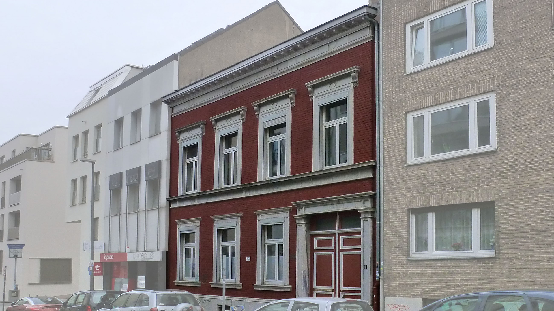 Das Baudenkmal in der Harscampstraße 11 ist ein Aachener Vierfensterhaus, das zentral, nahe dem Suermondtplatz und der heutigen Einkaufszone liegt.
