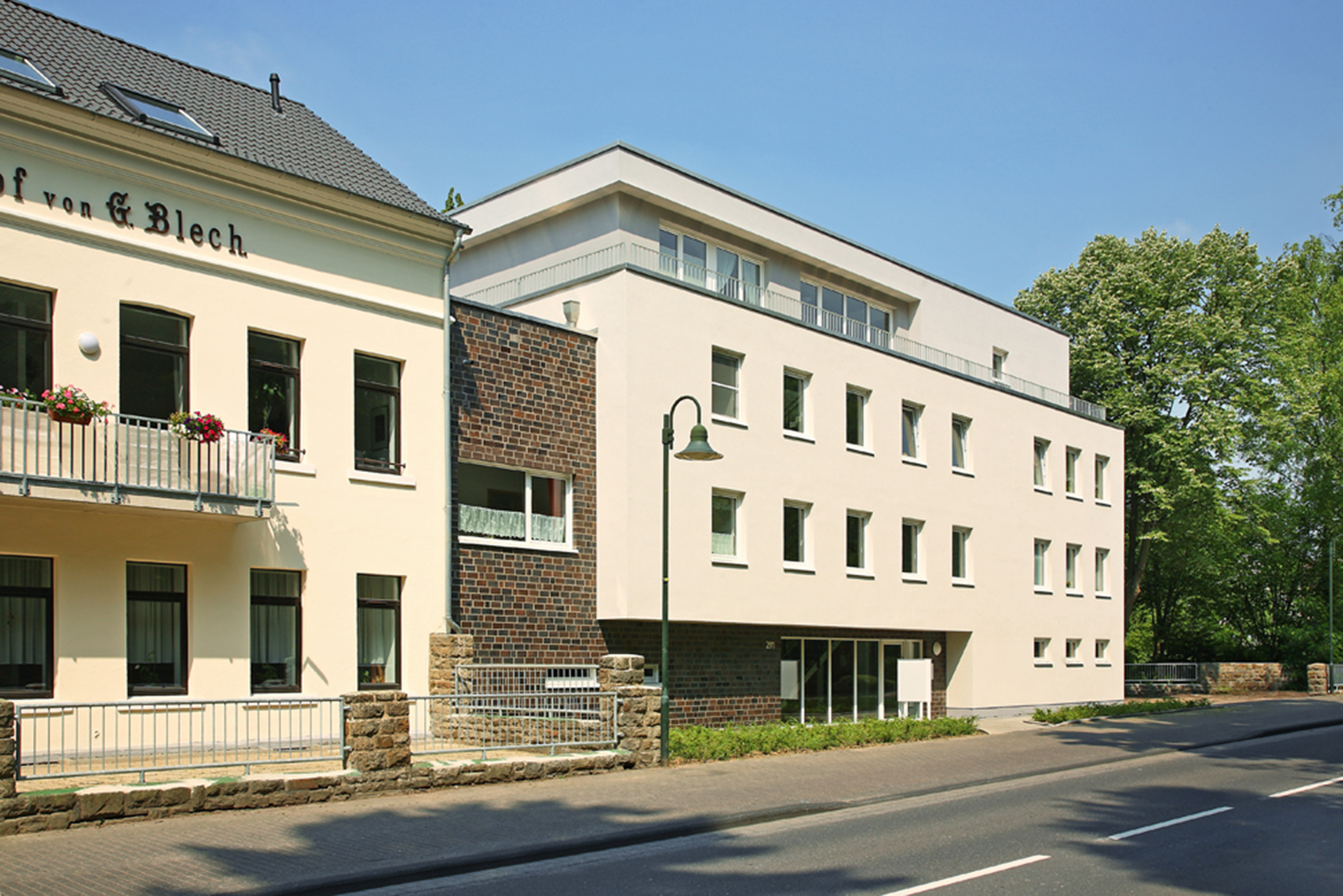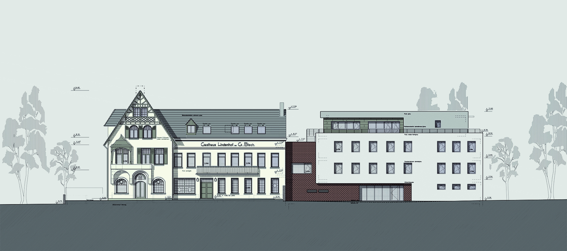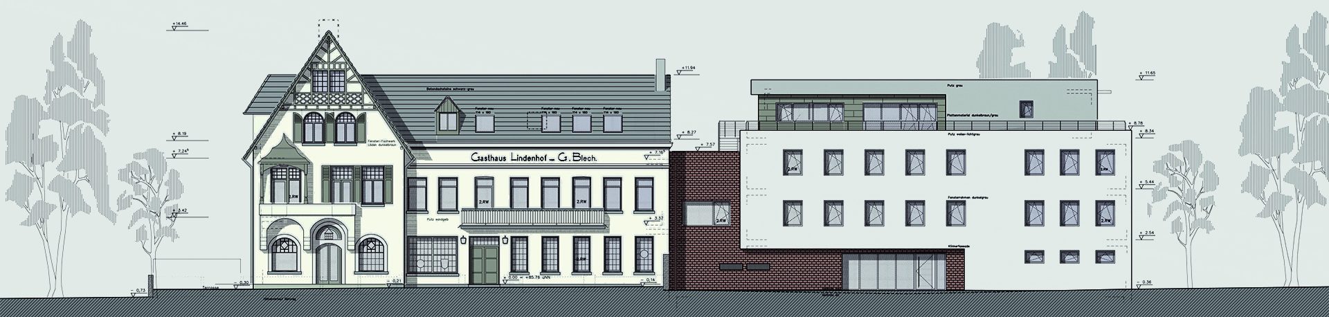 Der Anfang des 19.Jahrhunderts errichtet Gasthof Lindenhof war über viele Jahre ein beliebtes Ausflugsziel in der Region um Rösrath, doch seit der Jahrtausendwende steht das Gebäude jedoch leer. In Rahmen unserer Planungen wurden verschiedene Konzepte für eine Neuausrichtung angedacht, um den Lindenhof für Rösrath erhalten zu können. Das nun entstehende Projekt sieht die denkmalgerechte Sanierung des Lindenhofs und den Umbau in sechs öffentlich geförderte Wohnungen vor. Ein Neubau ergänzt das Denkmal an der Nordseite und bildet als Ensemble mit dem vorhandenen parkähnlichen Baumbestand und setzt einen deutlichen Akzent an der Ortseinfahrt Hoffnungsthal.