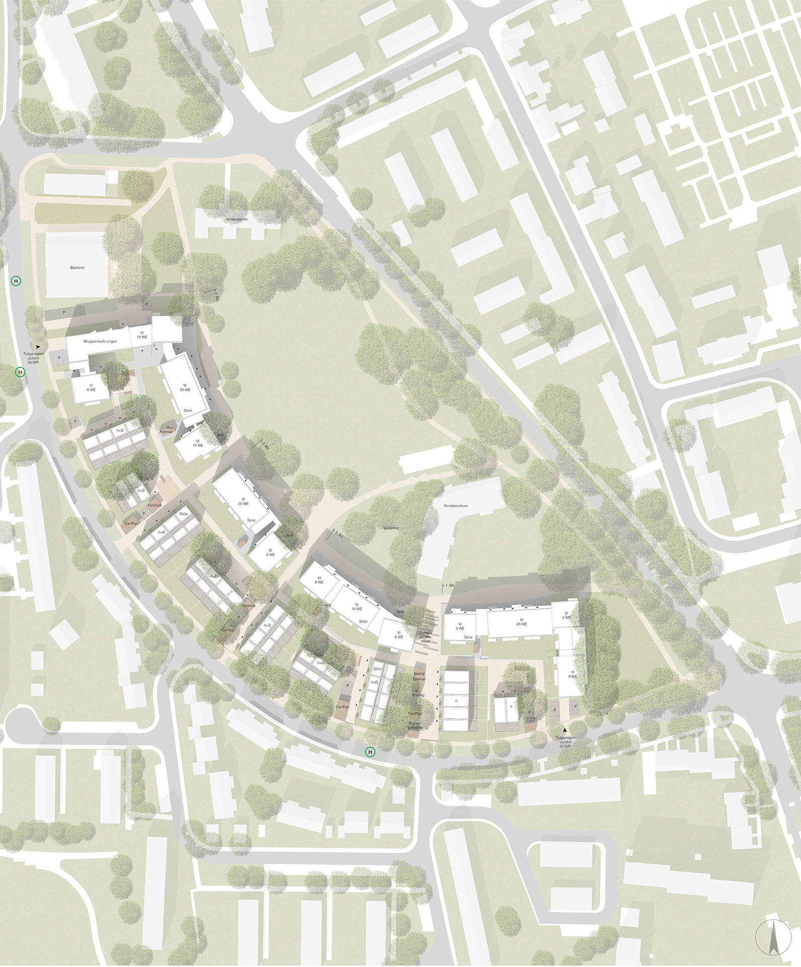 Die neue Bebauung verzahnt sich in den Randbereichen mit der Umgebung: