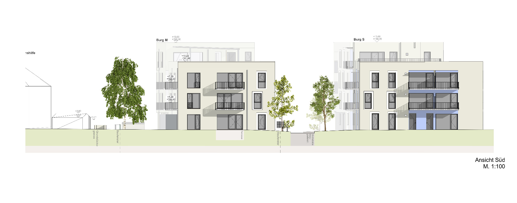 Mit dem Bauvorhaben „Burg M“ wird die Entwicklung des Talbotquartiers konsequent fortgesetzt. Als vierter Bauabschnitt ergänzt das Projekt die bisherigen Neubauten südlich der Jülicher Straße um ein kombiniertes Wohn- und Mobilitätsangebot. Das Grundstück liegt zwischen dem Projekt „Burg S“, dem Wohnheim der Lebenshilfe und der Kleingartensiedlung Wiesental. Grundlage ist der Bebauungsplan Nr. 849, der die Fläche als sogenannte „Multifunktionsfläche“ definiert. Ziel ist es, Wohnraum und Stellplatzkonzepte zu vereinen und den motorisierten Verkehr am Rand des Quartiers abzufangen.