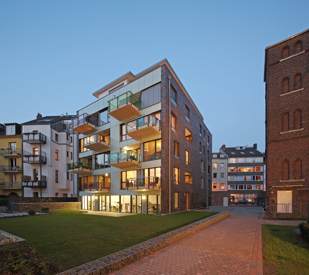 Zum Nachbarn schließt der Neubau mit einer „optischen Fuge“ an und achtet so das angrenzende Denkmalgebäude. Der neue Baukörper zeigt sich zweiseitig als geschlossene Lochfassade und öffnet sich mit einer Glasfassade und weit ausladenden Balkone zum Klostergarten. Die hochwertig ausgestatten Wohnungen bieten bei Wohnflächen zwischen 115 m² und 125 m² flexible Grundrisse für Paare mit und ohne Kinder. Ein Aufzug verbindet die Tiefgarage mit allen Etagen.
